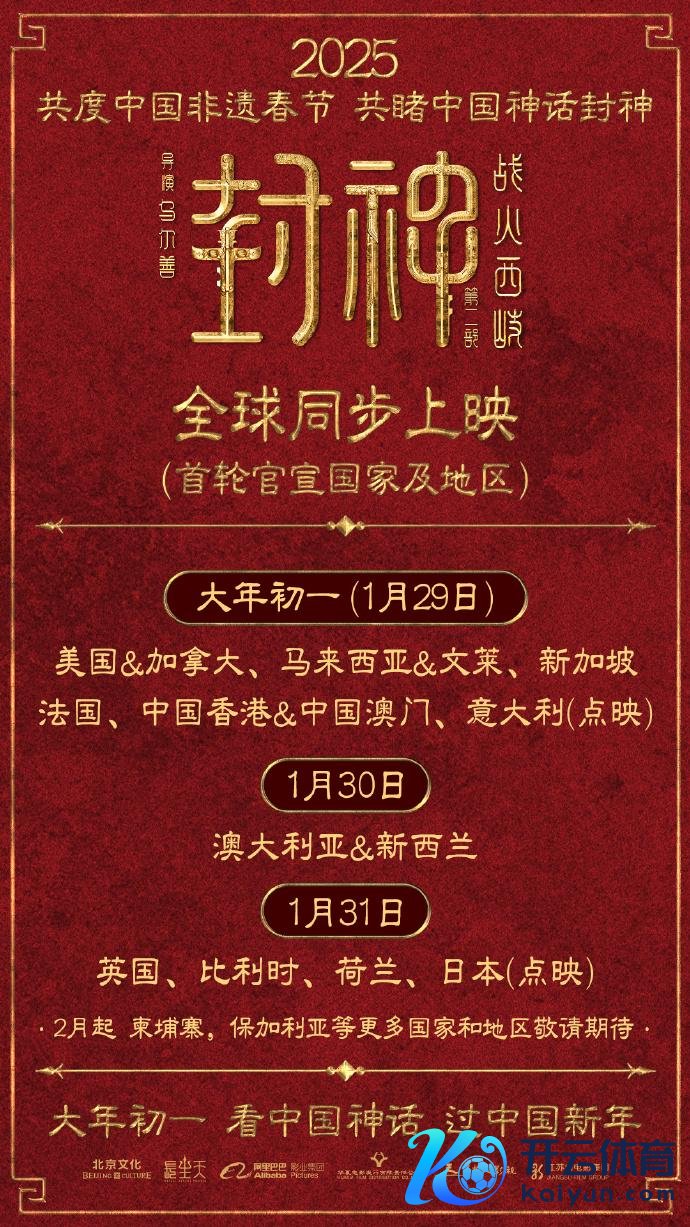 IT之家 1 月 12 日音信,国产外传大片《:战火西岐》昨日官宣将在大庞大个国度和地区同步上映九游体育app娱乐,该片仍是在中国大陆定档大年月朔(1 月 29 日)。