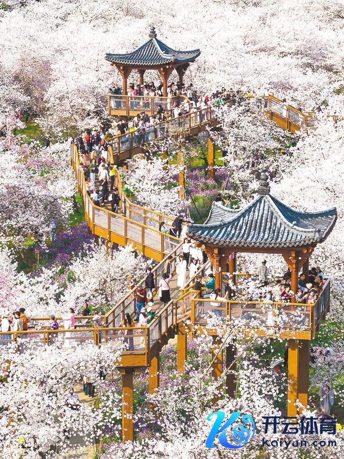 3月27日,武汉东湖樱花坛迎来盛花期,前来赏花打卡的搭客源源不时。(湖北日报全媒记者 薛婷 摄)