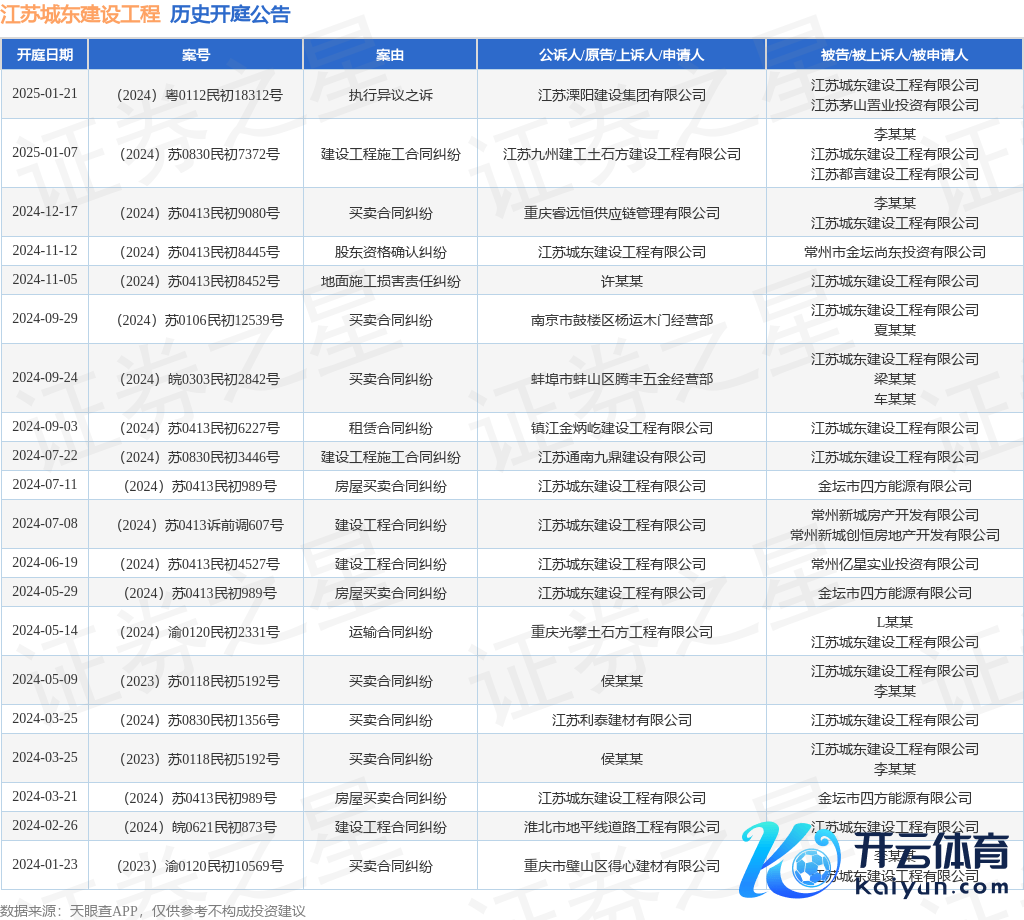 本站讯息,说明天眼查APP显现,近日公布了一则江苏城东建造工程有限公司算作被告/被上诉东说念主的开庭公告,堤防本色如下: