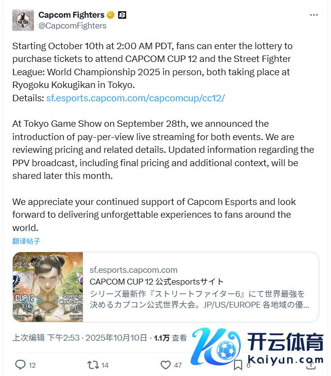 天然这份英文声明口吻较为保守,但Capcom日本电竞官方账号则在另一份声明中径直承认收到了无数负面反映。声明写谈:“咱们已收到来自粉丝的无数见地,正在重新搜检细节,现在正在推敲转化付费直播的价钱。谋划订价决策以及背后的原因与意图,将在10月底公布。感谢诸君粉丝的不绝与捏续撑捏。”