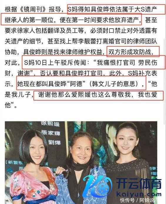 大S离开快一年了九游体育娱乐网,可围绕她的一切,似乎从未真实平息过。最近小S挑升出头显露,说网上那些对于姆妈和具俊晔为了遗产打讼事的音讯老练瞎扯,还强调具俊晔便是自家东谈主,根蒂不行能闹到法庭上。S妈也迅速随着表态,说我方早把具俊晔当亲女儿看了,打讼事这种事又花钱又伤情怀,她才不会干呢。