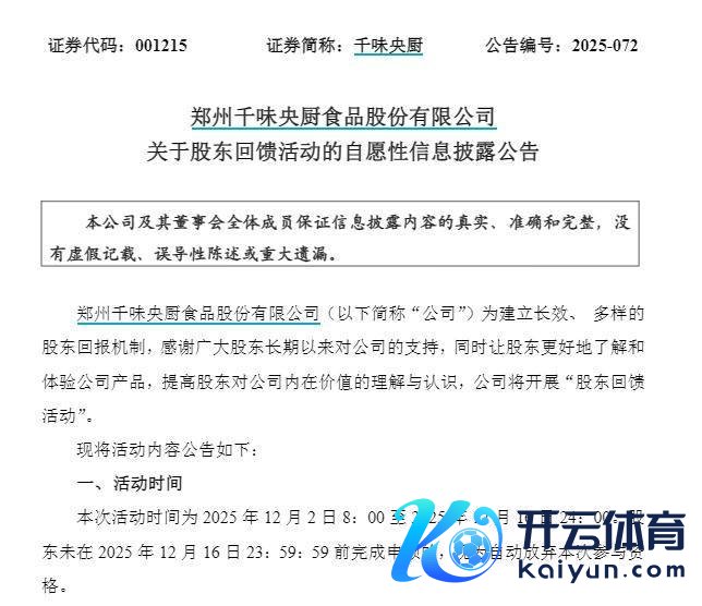 【大河财立方音问】12月1日,郑州千味央厨食物股份有限公司(证券简称:千味央厨)发布公告称现金九游体育app平台,将开展“鼓励回馈活动”,对得当要求的鼓励,赠予价值200元公司居品礼包。