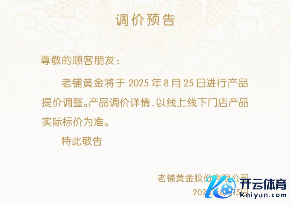 老铺黄金:将于8月25日进行家具提价治愈老铺黄金:将于8月25日进行家具提价治愈