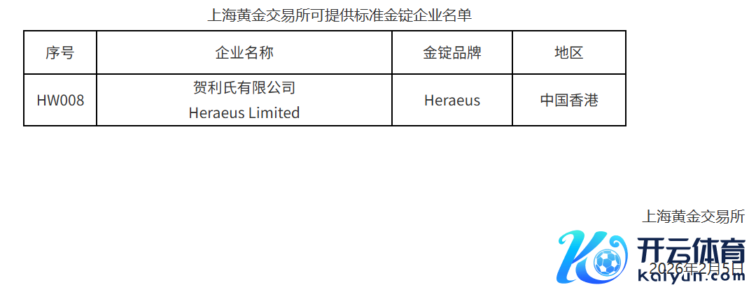 上海黄金走动所:新增贺利氏有限公司为境外可提供尺度金锭企业上海黄金走动所:新增贺利氏有限公司为境外可提供尺度金锭企业
